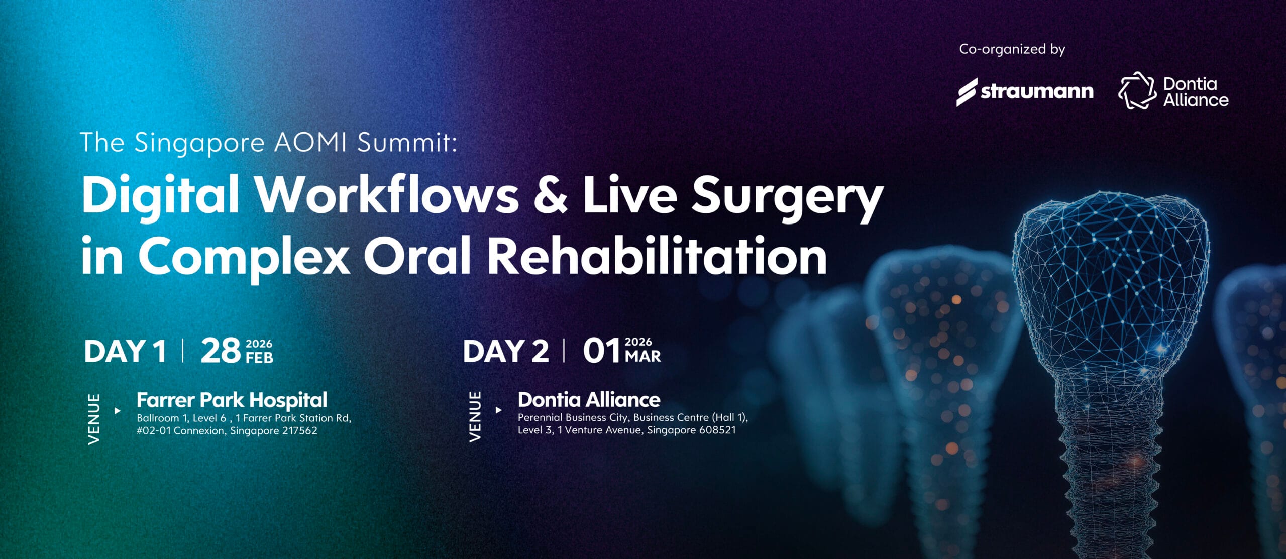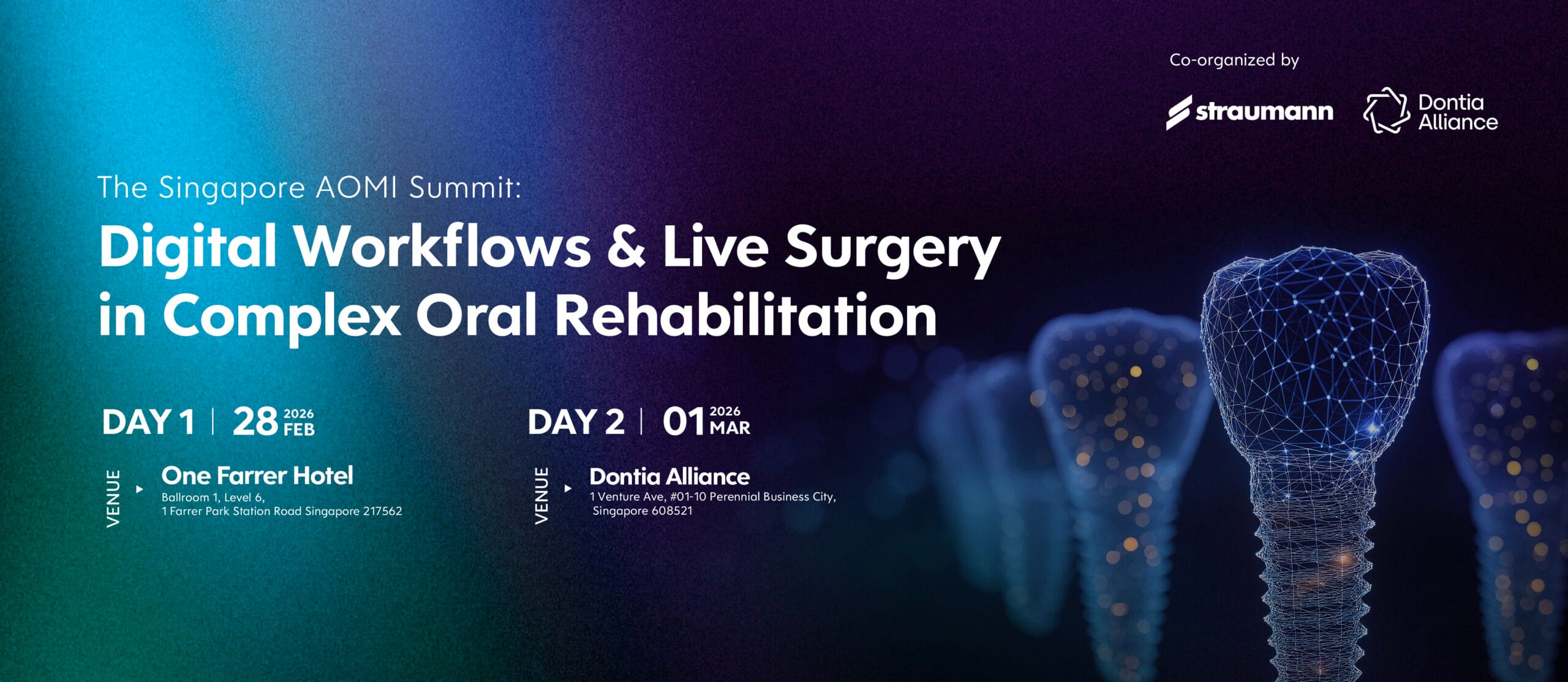 The Academy of Oral and Maxillofacial Implantologists (AOMI) is proud to launch its Singapore Chapter with a premier global summit, co-organized with Straumann and Dontia Alliance. This two-day intensive event brings together an international faculty of AOMI Board members to deliver a comprehensive masterclass in complex oral rehabilitation, blending advanced theory, digital innovation, and live surgical demonstration.